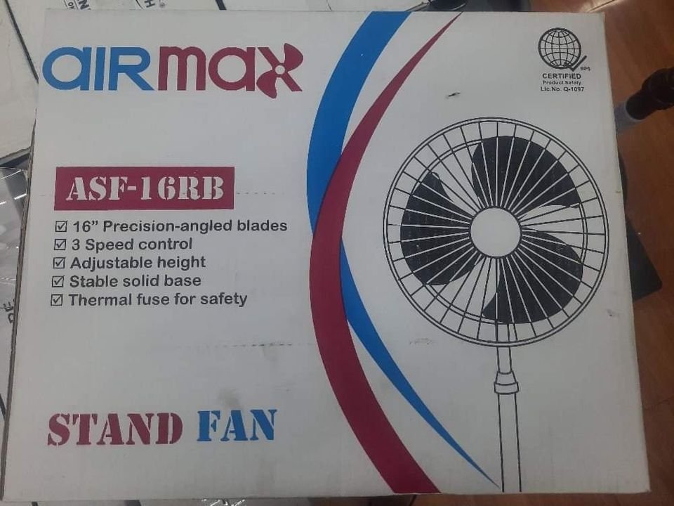 BUY 1 TAKE 1 AIRMAX STAND FAN 16″1,200 PESOS EACH 2,100 PESOS BUY 1 TAKE 1 16″ Precision-angled based 3 Speed control Adjustable height Stable solid base Thermal fuse for safety