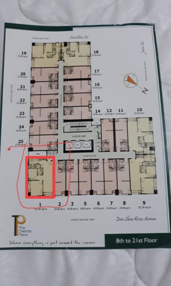 Location: The Oriental Place Pasong Tamo MakatiUnit Features:2 BR Unit- 52 sqm floor area- corner unit- 2 toilet & bath- with utility room/maid’s room- with 2 balconies (front and side) – with panoramic view of Makati skylineWell MaintainedNice InteriorFully FurnishedReady for OccupancyCLEAN TITLEPrice: Php9.4MFor Inquiries: O92O9495876Hazel MalimataPRC Lic. 0023129