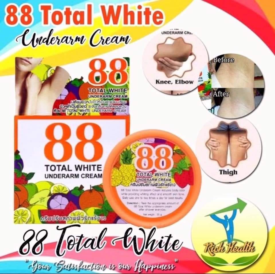 88 TOTAL WHITE UNDERARM WHITENING CREAMOriginal from THAILANDTRENDING na mamahalin! Di lang basta hype! Proven and tested na ng mga nakagamit!Maitim na kilikil? i-88 mo nayan!! Maitim na tuhod? i-88 mo nayan!! Maitim na singit? i-88 mo nayan!! Maitim na batok/leeg? i-88 mo nayan!!No need na sabayan ng DEO kapag gumagamit ka nito para mapaputi yung kili-kili mo or kahit magpantay nalang kung hindi naman yan kaitiman.Garantisadong NO ASIM the wholeday! 2in1 WHITENING NA DEO PA!! In 1 week makikita mona agad difference!Search on YT, Tiktok, Google kung gaano kaeffective ‘to, for sure na maaamaze kayo.