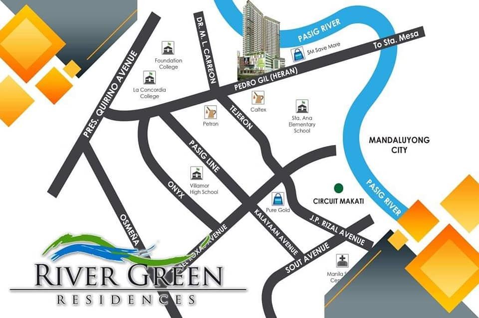 AFFORDABLE BRAND NEW CONDO FOR RENT TO OWN | SALEReady For Move In. Near Circuit Makati, Pedro Gil – Taft and Mandaluyong.FOR ONLY 13K MONTHLY!!Rivergreen ResidencesLocation : Pedro Gil Street Sta. Ana Manila (2 High Rise Towers with 31th Storey’s)**Best Location on part in Metro Manila( 10 minutes to Mandaluyong ) – 1 Ride Tricycle or Jeep( 15 minutes to Makati ) – 1 Ride Tricycle or Jeep( 15 minutes to Pedro Gil/Taft Malate Robinson Manila ) – 1 RideDP South Tower (Ready For Occupancy)”Also Can pay up to 12 months DP “(RENT TO OWN PROMO)AMENITIES:Swimming pool Clubhouse Jogging pathGazeboBarbecue pitsLaundry cagesBest Buy Best Choice Flood Free Area24 Hrs SecurityPet AllowedPerpetual OwnershipCOMMERCIAL SHOPS at GROUND and 2nd FLOOR:- Robinsons Supermarket- South Star Drugstore- Bayad Centers- Potato corner- SGT Sisig- Sweet Lemon- Takoyaki- Starbucks (soon to open) etc..
