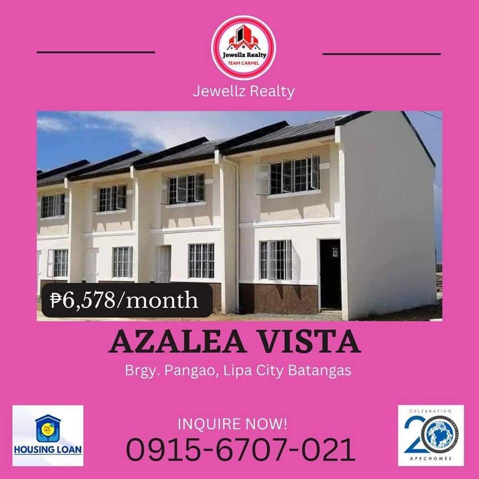 Naghahanap ka ba ng bahay sa Lipa Batangas?Mababa lang ang monthly equity as low as 3,650 per month3,300 Reservation fee6,600 monthly sa PagibigSa Azalea Vista lng yan dito sa Brgy Pangao Lipa Batangas.Also available Burbank Village Along hiway lang po eto.Free Tripping schedule please PM me.