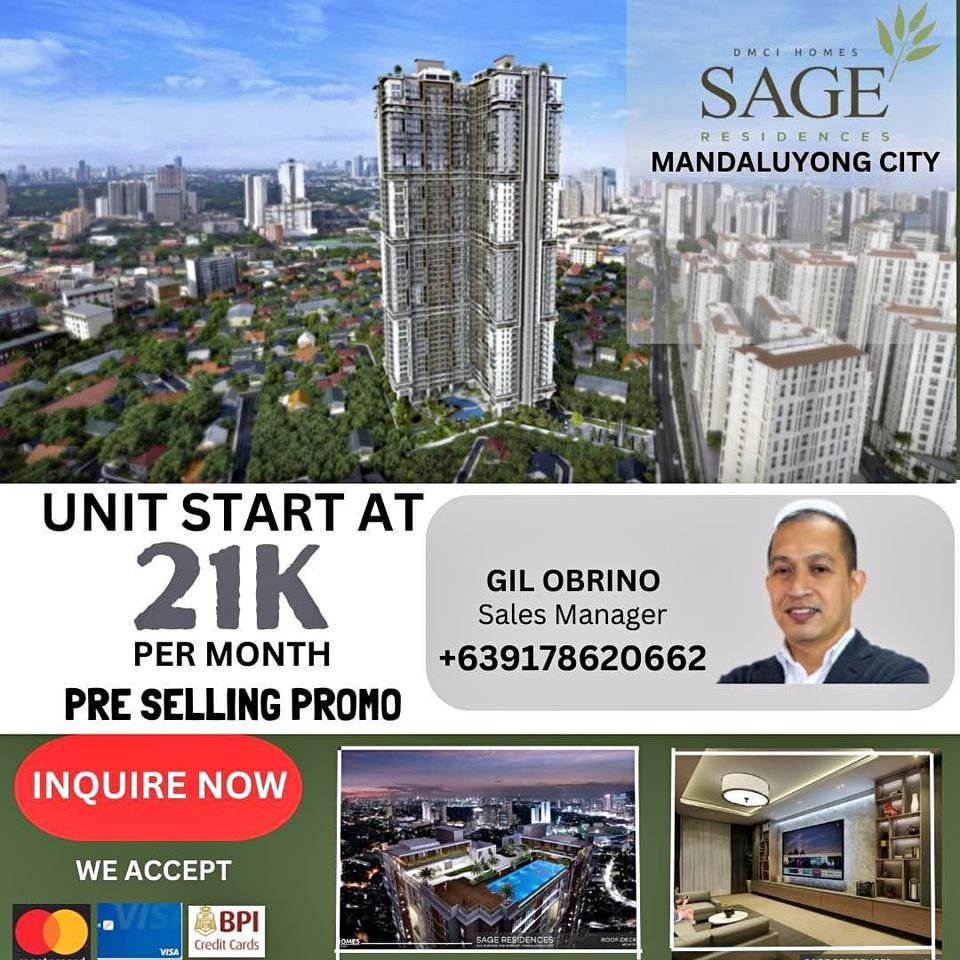 โฃ๐๐ ๐ฎ๐ฉ๐๐๐ญ๐๐ ๐จ๐ง ๐๐ฅ๐ฅ ๐๐๐๐ ๐๐จ๐ฆ๐๐ฌ ๐ฉ๐ซ๐จ๐ฃ๐๐๐ญ๐ฌ ๐ฐ๐ข๐ญ๐ก๐ข๐ง ๐๐๐ญ๐ซ๐จ ๐๐๐ง๐ข๐ฅ๐! โฃโฃโฃโฃ๐๐๐ค๐ ๐๐๐ฏ๐๐ง๐ญ๐๐ ๐ ๐จ๐ ๐ญ๐ก๐ ๐๐ฑ๐๐ข๐ญ๐ข๐ง๐ ๐๐๐๐๐๐ ๐๐จ๐ซ MARCH! โฃโฃโฃโฃโฃโฃ๐๐๐-๐๐๐๐๐๐๐ ๐๐๐๐๐๐๐๐ | ๐๐๐๐ ๐๐จ๐ฆ๐๐ฌโฃโฃโฃโฃโฃโฃโฃโฃ๐๐๐๐๐๐๐๐๐๐๐ ๐๐๐๐:โฃโฃโฃ๐๐๐๐ ๐๐๐๐๐๐๐๐๐๐ (DM Guevarra & Sinag St)โฃโฃโฃ๐๐๐ ๐๐๐๐๐๐ ๐๐๐๐๐๐๐๐๐๐ (Near Boni Ave)โฃโฃโฃโฃโฃโฃ> ๐๐๐๐๐:โฃโฃโฃโฃ๐๐๐๐๐๐๐ ๐๐๐๐๐๐ ๐๐๐๐๐โฃ (Pasig Blvd.near C5)โฃโฃโฃโฃ๐๐๐๐๐๐ ๐๐๐๐๐๐๐๐๐๐โฃ (F.Pasco Avenue, Santolan)โฃโฃโฃโฃ๐๐๐๐๐๐ ๐๐๐๐๐๐๐๐๐๐โฃ (Pasig Blvd.Corner C5)โฃโฃโฃโฃโฃโฃ> ๐๐๐๐๐๐ ๐๐๐๐:โฃโฃโฃโฃ๐๐๐ ๐๐๐๐ ๐๐๐๐๐๐๐ (Commonwealth cor Tandang Sora)โฃโฃโฃ๐๐๐ ๐๐๐ ๐๐๐ช๐๐๐โฃ (Aurora Blvd beside NCBA)โฃโฃโฃ๐๐๐๐๐๐๐ ๐๐๐๐๐๐๐๐๐๐โฃ (Bernardo Ave, Roosevelt Ave near Fishermallโฃ)โฃโฃโฃ๐๐๐ ๐๐๐๐๐๐๐๐๐โฃ (Panay Ave South Triangle beside McDoโฃ)โฃโฃโฃโฃ๐๐๐ ๐๐๐๐๐๐ (Aurora Boulevard,beside NCBA)โฃโฃโฃโฃโฃโฃ> ๐๐๐๐๐๐๐๐๐:โฃโฃโฃโฃ๐๐๐ ๐๐๐๐๐๐๐๐โฃ (Along Dr. A Santos Avenue) โฃโฃโฃโฃโฃโฃโฃ> ๐๐๐ ๐๐๐๐๐:โฃโฃโฃโฃ๐๐๐๐๐๐ ๐๐๐๐๐๐ ๐๐๐๐๐๐๐๐๐๐โฃ (Alabang Zapote Road, Talon Uno)โฃโฃโฃ > TAGUIG CITYAlder Residences – Acacia Estate brgy Ususan Mulberry Place 2- Acacia Estateโฃโฃโฃ๐๐๐๐๐๐๐๐ ๐๐ ๐๐๐๐๐๐๐๐๐๐๐ ๐๐๐๐ ๐๐ ๐๐๐๐๐! โฃโฃโฃ๐๐ญ๐ฆ๐ข๐ด๐ฆ ๐๐ฐ๐ฏ๐ต๐ข๐ค๐ต:โฃโฃโฃGIL OBRINOโฃ[hidden information] (Whatsapp / Viber ready)โฃโฃโฃwww.dmcihomesonline.phโฃโฃโฃHLURB # NCRFO-A- 011589โฃโฃโฃโฃ๐๐ก๐๐ง๐ค ๐ฒ๐จ๐ฎ!โฃโฃโฃ#dmcihomes #investment #dmci #preselling #condominium #quezoncity #mandaluyong #pasig #caloocan #taguig #mandaluyongcondoforsale #mulberryplace #sageresidences #theerinheights #presellingcondo #promodiscount #largeunits #condoresort #lumiventtdesign28