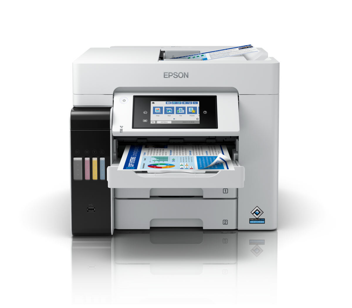Printing Technology:PrecisonCore PrintheadNozzle Configuration:800 x 1 nozzles each (Black, Cyan, Magenta, Yellow)Print Direction:Bi-directional printingMaximum Print Resolution:4,800 x 1,200 dpiMinimum Ink Droplet Size:3.8 plPrint Speed:ISO 24734, A4 Simplex (Black/Colour): Up to 25 ipm / 25 ipm