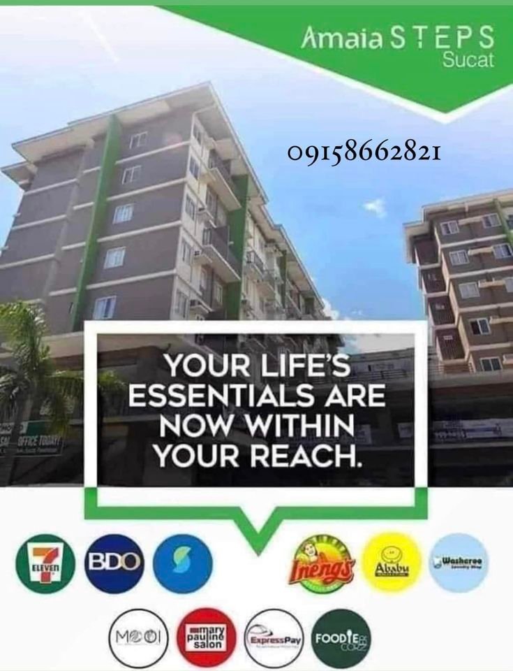 MAIA STEPS SUCAT PARANAQUE CONDO FOR RENT TO OWN️ STUDIO 12k Bare/15k = furnished️ 1 br 16k to 18k =furnished️ 2 BR 18k Bare /20k to 25k= furnished PARKING 5K AMAIA STEPS SUCAT1 MONTH ADVANCE 2 MONTHS DEPOSIT NEAR ESTABLISHMENTS BDO, 711, Security Bank, Kambal Pandesal, Ineng’s, and water station- all are available at the main building of Amaia 5 mins to S&R, SM BF, Puregold, Unihealth Hospital, HMR Trading House, Jaka Plaza, and Parañaque City Hall Near BF Homes, SM Sucat, Walter Mart, PATTS COLLEGE, SLEX, Airport Easy transportation access (going to Makati/BGC/Muntinlupa/Pasay)