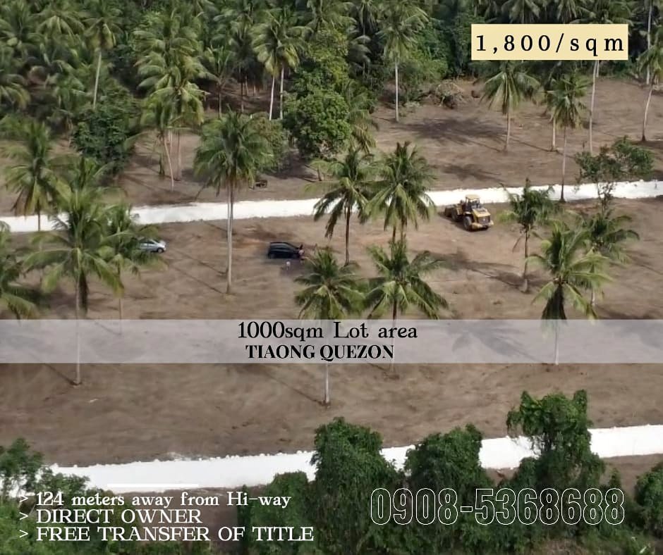 CABAY FARM1000 square meter1.8M All In.Located in Brgy. Cabay Tiaong Quezon Titled and updated tax 120 meters from highway (Marcial C. Punzalan highway) Electricity, Internet at Water services are available on the area. Planted with coconut trees Deed of sales, taxes and all fees upon processing the transfer of title to buyer’s Name will be our expense. For interested, you may contact0915670702109085368688