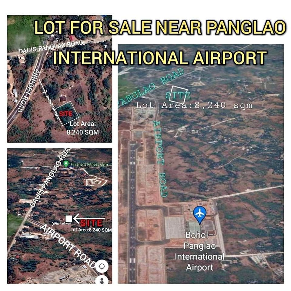 LOT FOR SALEFEW METERS AWAY FROM PANGLAO INTERNATIONAL AIRPORT..LOT AREA: 8,240 SQMLocation:LOURDES PANGLAO,BOHOL2nd Lot from National Road and Airport Road..10-15mins drive to Tagbilaran City Perfect for Commercial Near Bohol Beach Club and Alona BeachStatus:Clean Tax Declaration with supporting documents..Title is on processPrice: 12,000/sqm NegotiableGood for Hotel and commercial Development